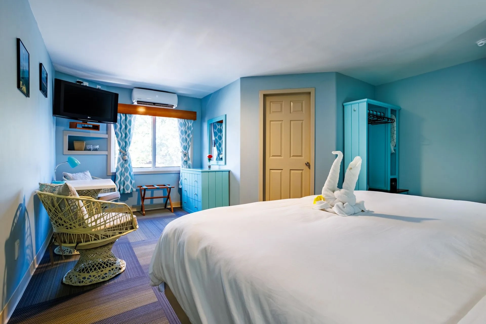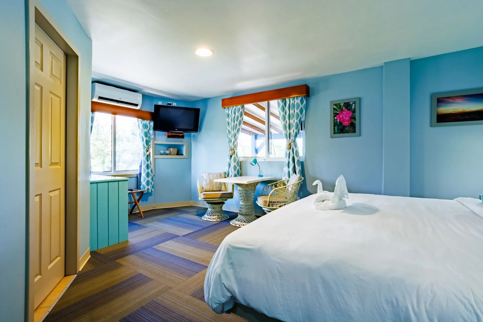 Accommodations at Green Parrot Suites are designed to exceed expectations, with each unit offering a choice of a king bed or two queen beds. Luxurious linens and towels, air conditioning, an in-room safe, refrigerator, private bathrooms with rain showers, Wi-Fi, and cable TV ensure a comfortable and enjoyable stay. Some rooms also feature a microwave oven and Refrigerator for added convenience. For those seeking a more spacious retreat, the studio suite offers all the amenities mentioned above, along with a full kitchen, dining table, queen sofa bed, and private balcony, providing the perfect setting for savouring the breathtaking views of Maya Beach.