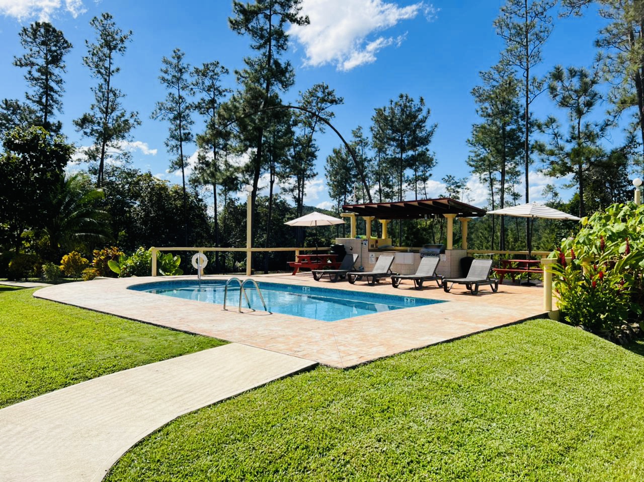Turnkey business for sale in Mountain Pine Ridge, Belize, surrounded by waterfalls, forest, and eco-tourism appeal. A ready-to-run opportunity in the Caribbean, ideal for investors. Contact Jaime Wesby for details on this unique Belize real estate offering. Beautiful, titled 4.9-acre property located in the heart of the Mountain Pine Ridge Forest Reserve (Cayo District). This Estate offers 3 fully furnished villas/houses, a staff house, a 15,000-gallon mineral swimming pool, 120’ ft tower allowing access to high-speed internet. Directly bordering the property is Little Vaqueros Creek, which is a year-round water supply. Construction was completed in 2017 and the property has been profitable since the day it became operational (evenduring the pandemic). Large pool deck with 15,000-gallon mineral swimming pool with solar pool pump and back up 1.5 Hp electrical pump. Solar System-15 lithium batteries, 60 solar panels (270 watts/panel), 2 Outback inverters, 6 Outback charge controllers. Supported by an automatic start back-up 20kW Generac generator. The solar system has been consistently maintained since its installation.