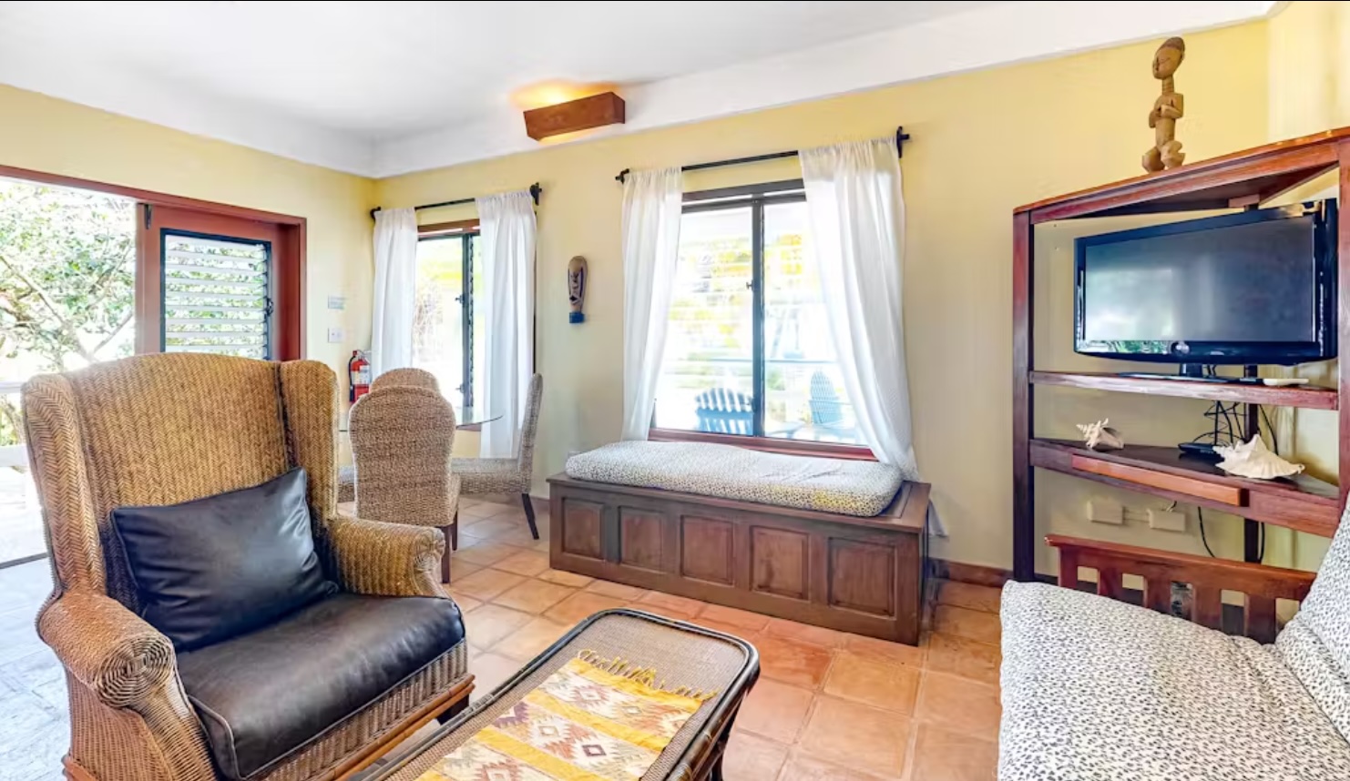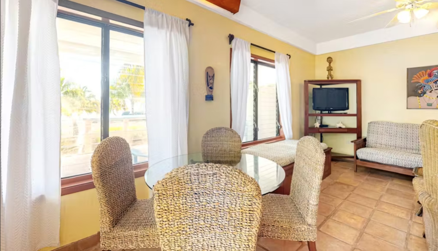 Welcome to your dream beachside getaway at Beachside Villas along the stunning Placencia Peninsula! Nestled on 1.9 acres of tropical paradise, this luxurious 1 bedroom, 1 bath condo offers the perfect blend of comfort, convenience, and breath-taking views. The bedroom is a tranquil retreat, complete with a plush queen-size bed, ample closet space, and soothing coastal decor. Wake up to the gentle sound of waves and step out onto your private balcony to savor your morning coffee while soaking in the panoramic ocean vistas.The bathroom is very stylish, featuring sleek Mexican tiling, a walk-in shower, and plenty of storage space for your essentials.