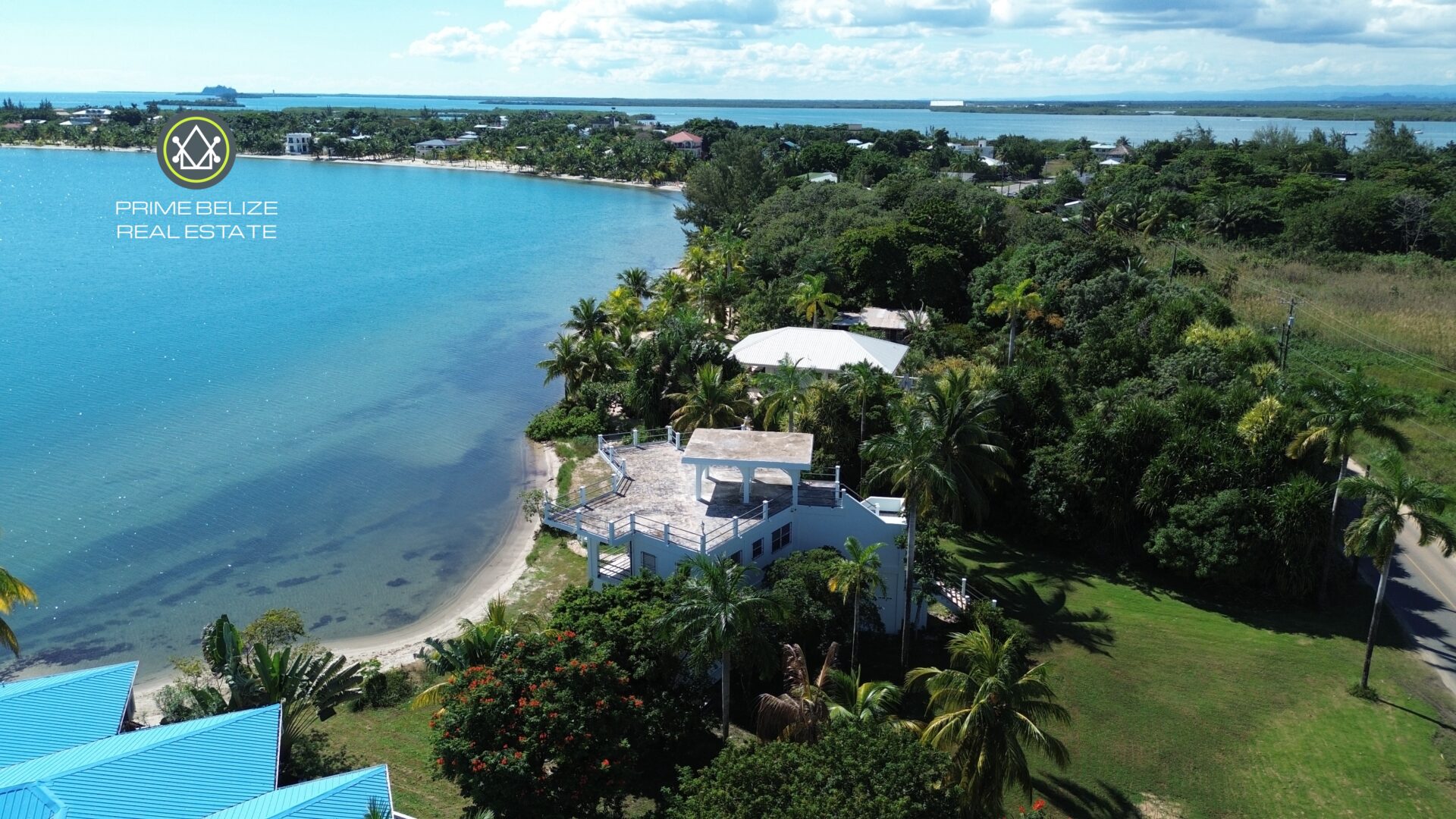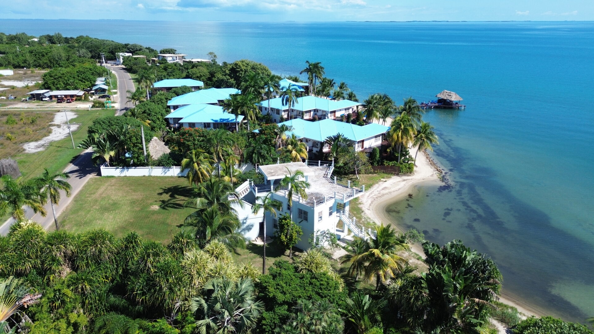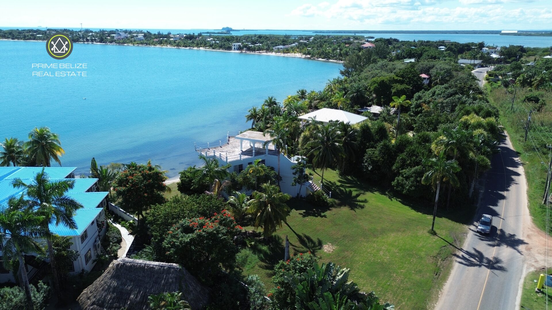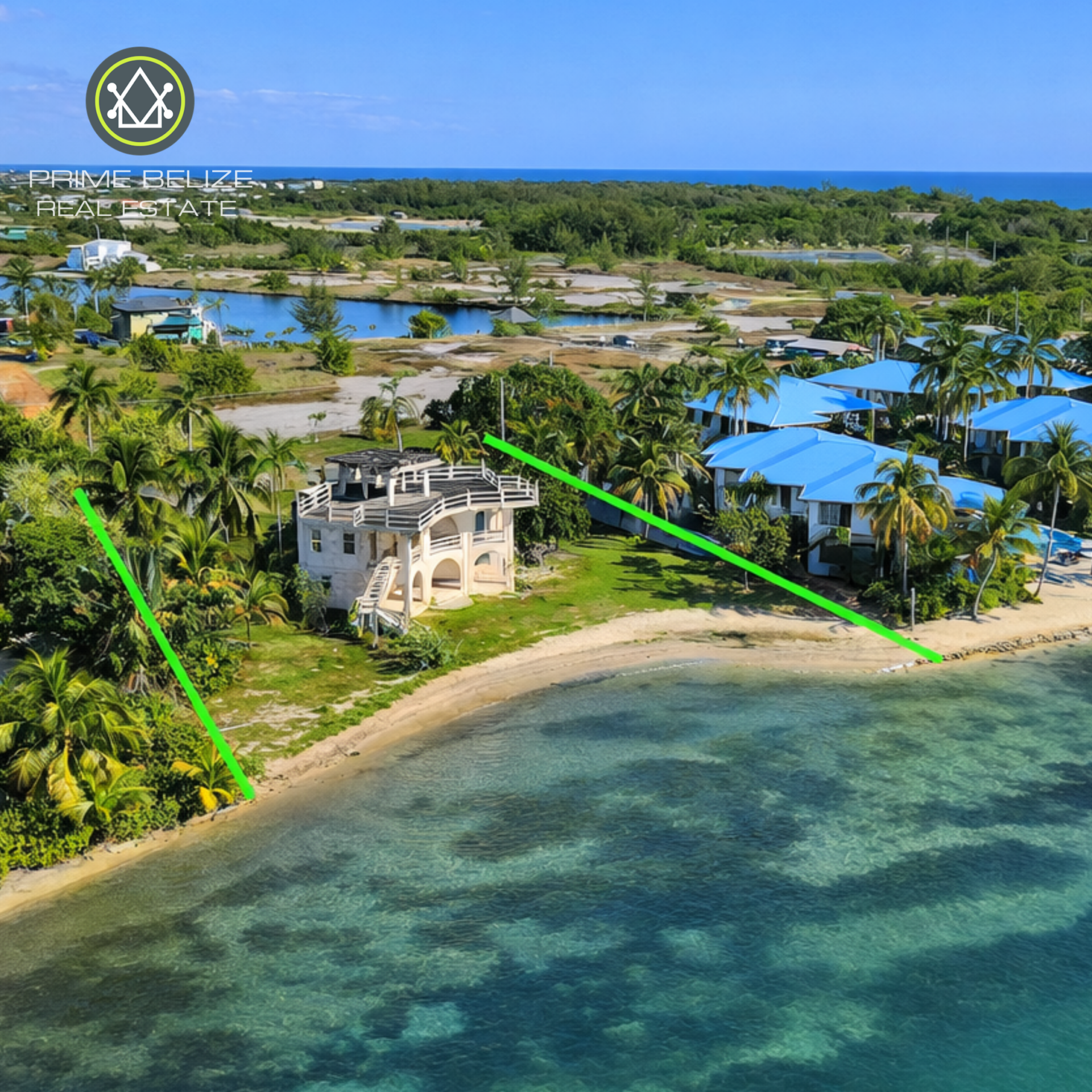 The expansive lot features 166 feet of prime beachfront and extends 232 feet towards the main Placencia road.