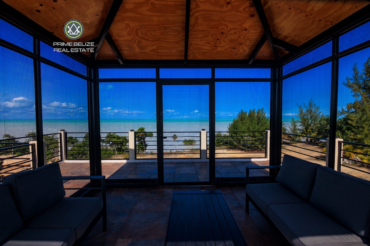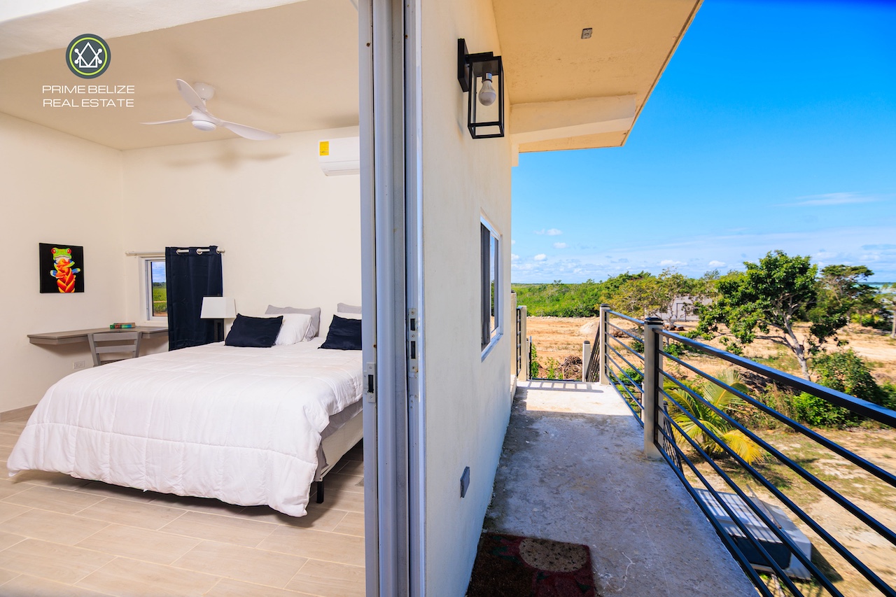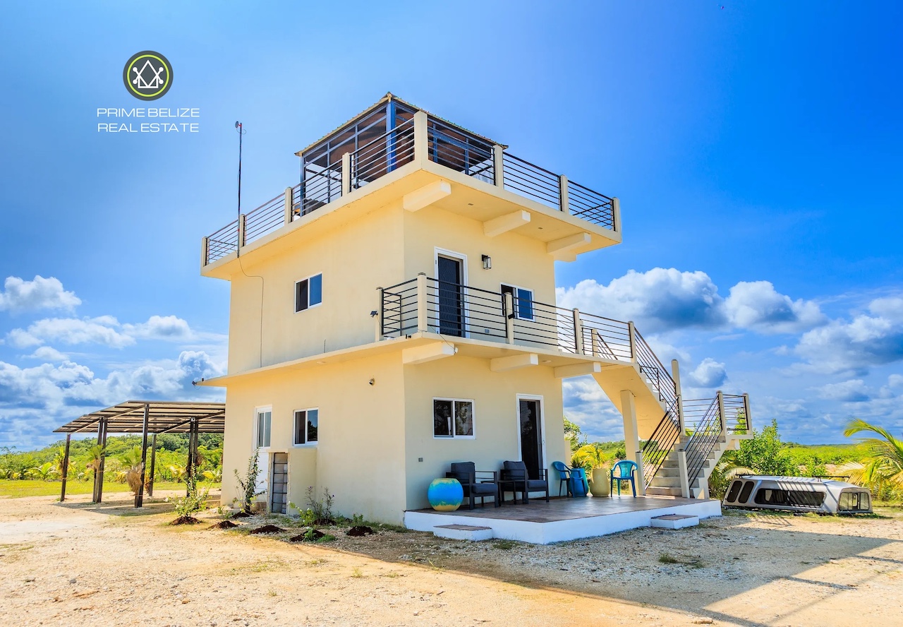 This exceptional titled 1.823-acre (0.739-hectare) beachfront property offers a rare opportunity to own a private, Solar ,self-sustained retreat in the peaceful coastal village of Sarteneja, within the Corozal District. The property features a solid two-story concrete home with approximately 500 sq.ft per level, complemented by a spacious rooftop terrace showcasing panoramic views of Chetumal Bay, vibrant sunsets, and star-filled skies with minimal light pollution. In the distance, the glow of Chetumal adds a unique contrast to the surrounding natural beauty. Designed for modern off-grid living, the home is powered by a 14 kW solar system with dual inverters and comes fully furnished with nearly new appliances, air-conditioning, and high-speed Wi-Fi. Smart-home features allow remote control of energy systems and security, while the fully fenced property ensures privacy and security.