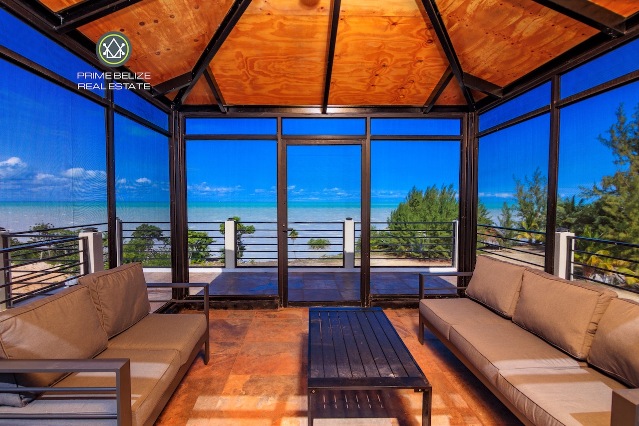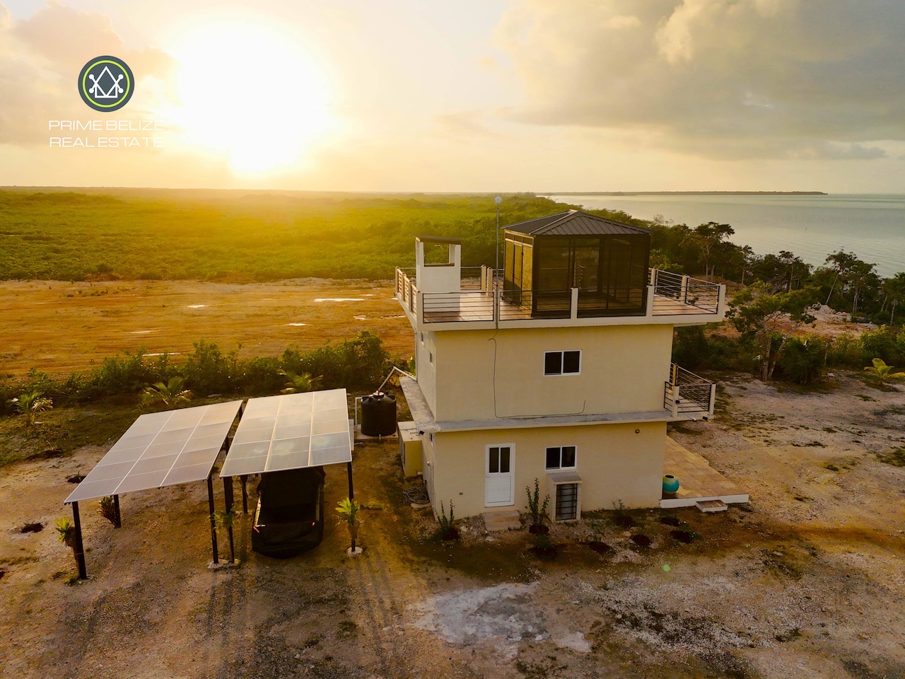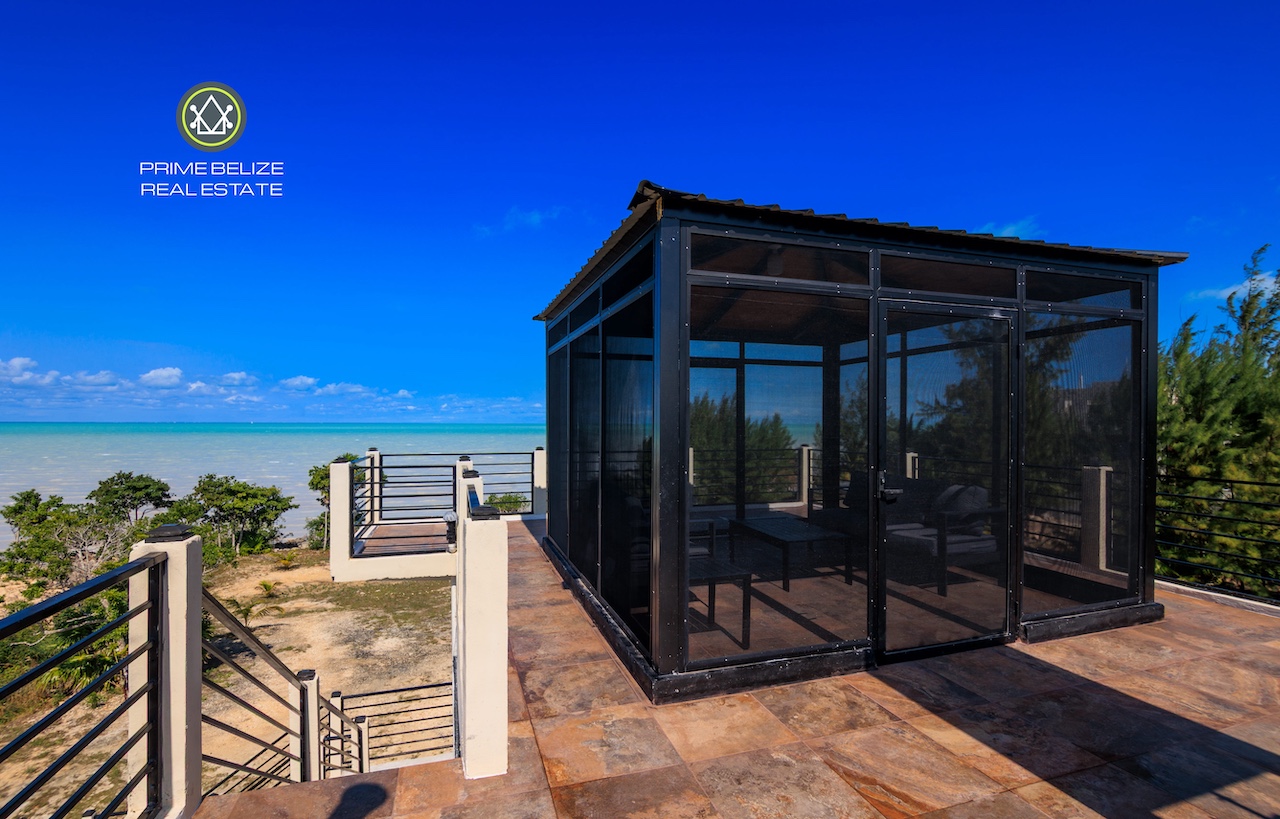 This exceptional titled 1.823-acre (0.739-hectare) beachfront property offers a rare opportunity to own a private, Solar ,self-sustained retreat in the peaceful coastal village of Sarteneja, within the Corozal District. The property features a solid two-story concrete home with approximately 500 sq.ft per level, complemented by a spacious rooftop terrace showcasing panoramic views of Chetumal Bay, vibrant sunsets, and star-filled skies with minimal light pollution. In the distance, the glow of Chetumal adds a unique contrast to the surrounding natural beauty. Designed for modern off-grid living, the home is powered by a 14 kW solar system with dual inverters and comes fully furnished with nearly new appliances, air-conditioning, and high-speed Wi-Fi. Smart-home features allow remote control of energy systems and security, while the fully fenced property ensures privacy and security.