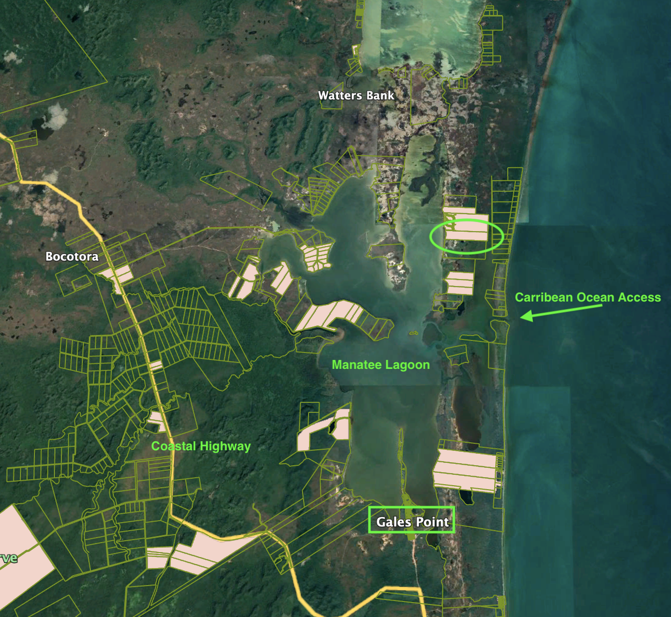 Spanning 90.627 acres, this property boasts a unique charm, complemented by the adjoining Western and Sapodilla Lagoons. Surrounded by foothills and mountains to the west, this area features a pristine estuary system fed by seven freshwater jungle rivers, with one wild-and-scenic river streaming out to the Caribbean Sea.